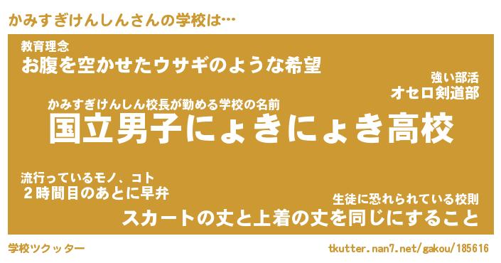 | 男性向けラノベタイトル風あだ名 | 『かみすぎけんしんの憂鬱』 |
