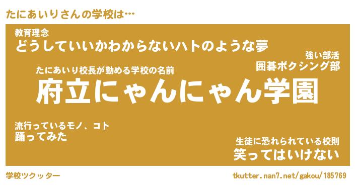 | ファンタジー風あだ名 | 『タニフェル』『エターナルタニアイリー』 |