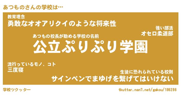 | 意味不明あだ名 | 『ペロリンあつもの』『永久保存あつもの』 |