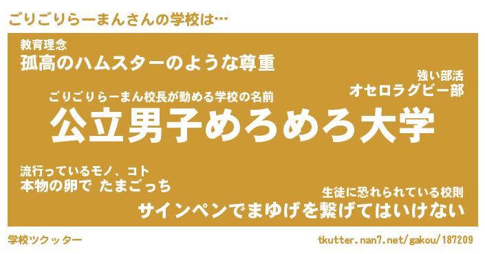 | 男性向けラノベタイトル風あだ名 | 『ごりごりらーまんの憂鬱』 |