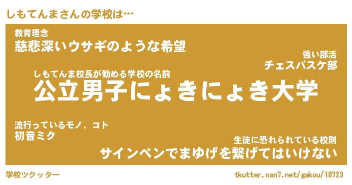 | 男性向けラノベタイトル風あだ名 | 『しもてんまの憂鬱』 |