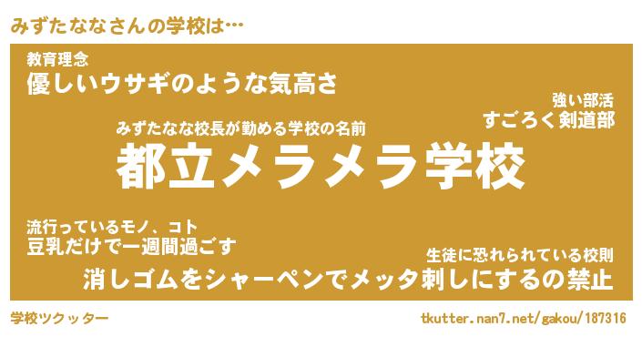 | 男性向けラノベタイトル風あだ名 | 『みずたななの憂鬱』 |