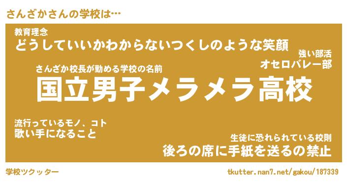 | 欧米人風あだ名 | 『マイケルさんざか』『ウサインさんざか』 |