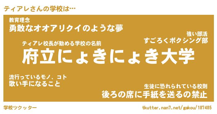 | 意味不明あだ名 | 『ペロリンティアレ』『永久保存ティアレ』 |