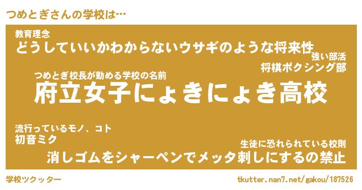 | 自動車の名前っぽいあだ名 | 『ツメティマ』『ツスラー』『ツント』 |