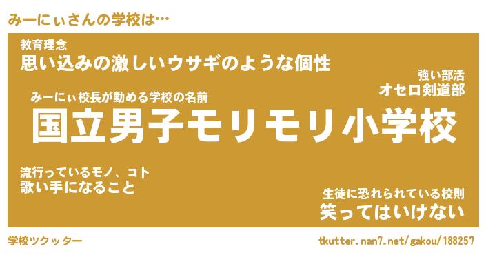 | 男性向けラノベタイトル風あだ名 | 『みーにぃの憂鬱』 |