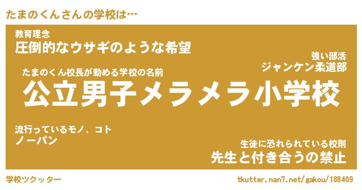 | ヒーロー風カッコイイあだ名 | 『スーパータマノクン』『天弓騎士タマ』 |