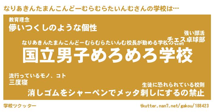 | 番長 | なりあきんたまんこんどーむらむらたいんむ、またの名を・・・!『だいたいなりあきんたまんこんどーむらむらたいんむちん』 |
