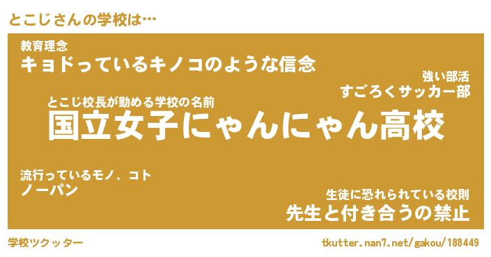 | ヘコむあだ名 | 『とこもー』『酢こんぶ』 |