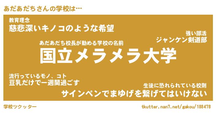 | ヘコむあだ名 | 『あだにー』『牛乳』『あだお』 |