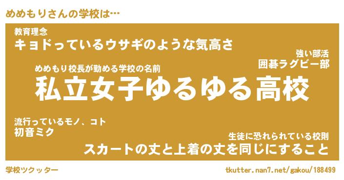 | 意味不明あだ名 | 『ペロリンめめもり』『永久保存めめもり』 |