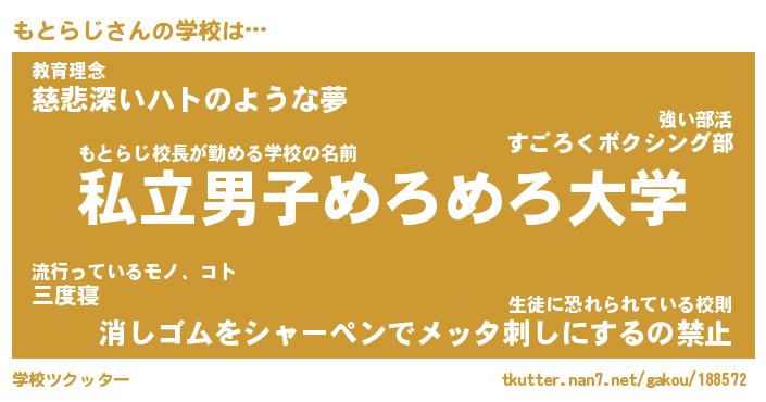 | 意味不明あだ名 | 『ペロリンもとらじ』『永久保存もとらじ』 |