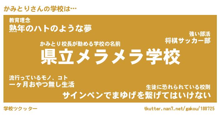 | ヒーロー風カッコイイあだ名 | 『スーパーカミトリ』『黄金騎士カミ』 |
