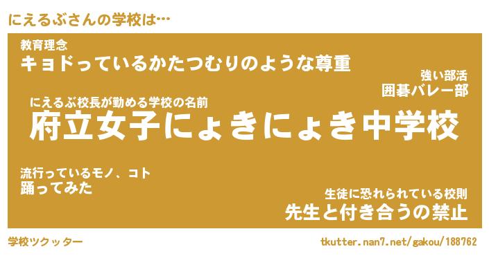 | 意味不明あだ名 | 『ペロリンにえるぶ』『永久保存にえるぶ』 |