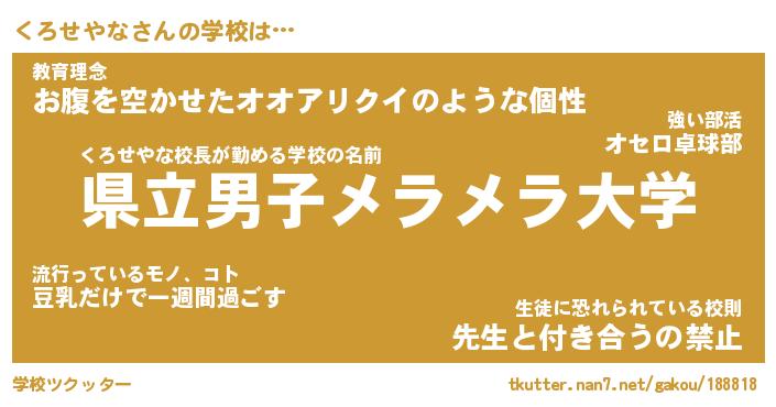 | ヘコむあだ名 | 『くろにー』『酢こんぶ』『くろっぺ』 |