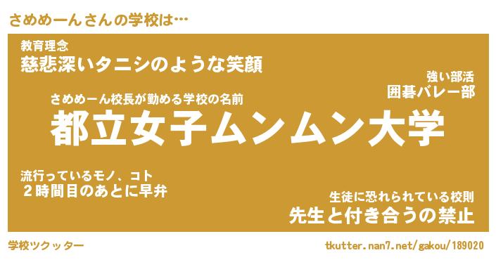 | ヘコむあだ名 | 『さめにゅー』『牛乳』『さめ太郎』 |