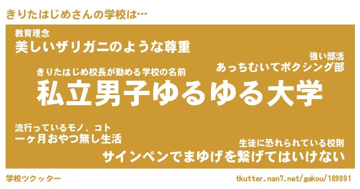 | 男性向けラノベタイトル風あだ名 | 『きりたはじめの憂鬱』 |