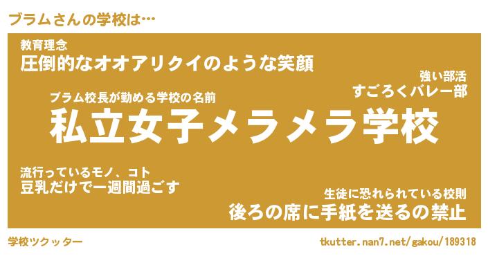 | ヘコむあだ名 | 『ブラにー』『牛乳』『ブラお』 |
