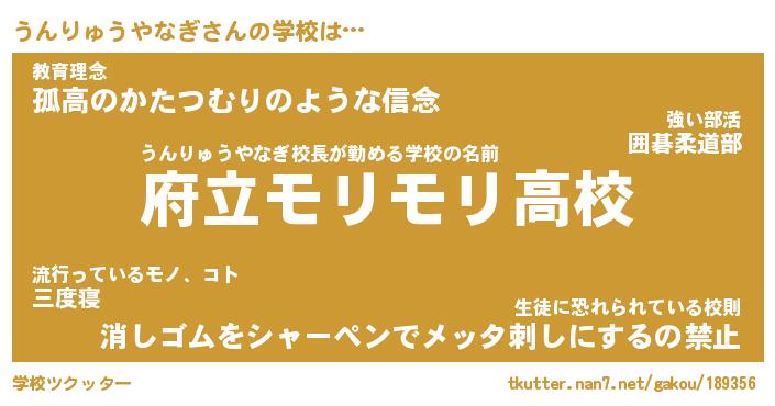 | 男性向けラノベタイトル風あだ名 | 『うんりゅうやなぎの憂鬱』 |
