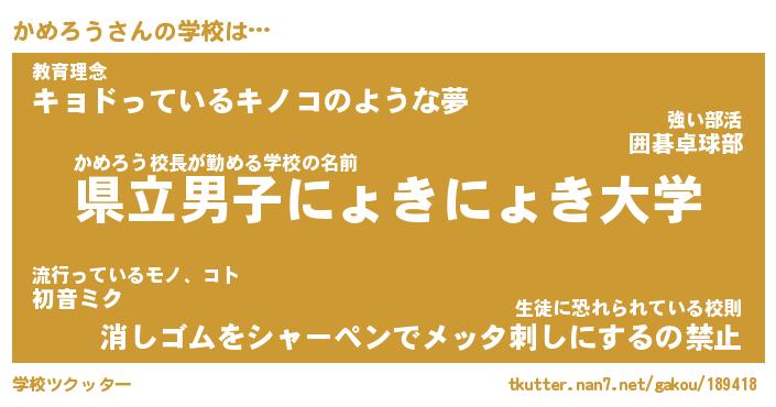 | 意味不明あだ名 | 『ペロリンかめろう』『永久保存かめろう』 |