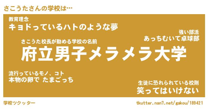| 意味不明あだ名 | 『ペロリンさこうた』『永久保存さこうた』 |