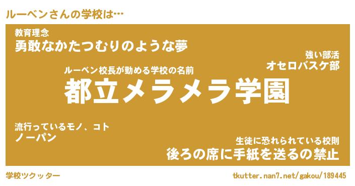 | 肩書あだ名 | 『ルーベン社長』『ルーベン総理大臣』 |