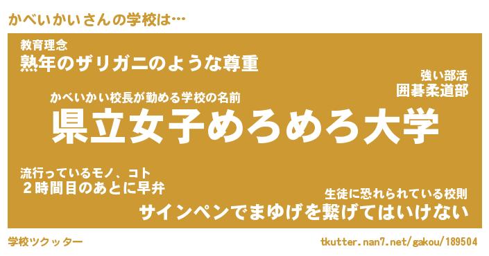 | ファンタジー風あだ名 | 『カベフェル』『エターナルカベイカイー』 |