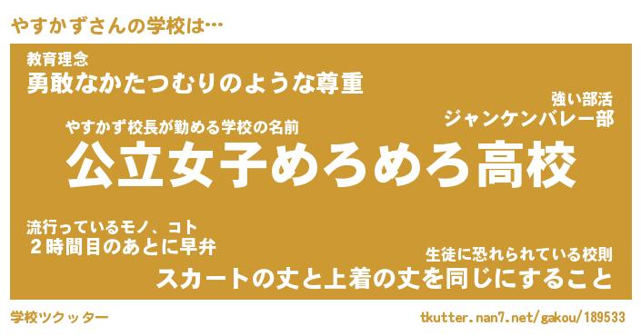 | やすかず先生が勤める学校名『府立しゃくれ高校』 |