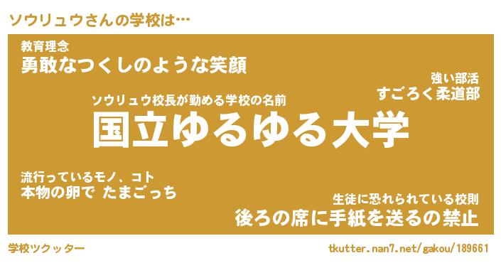 | 男性向けラノベタイトル風あだ名 | 『ソウリュウの憂鬱』 |