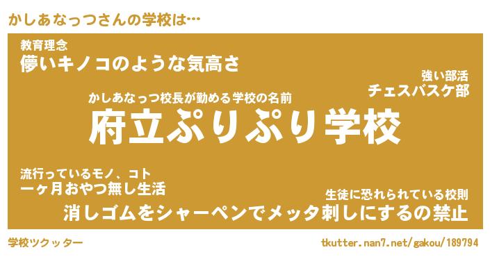 | 男性向けラノベタイトル風あだ名 | 『かしあなっつの憂鬱』 |