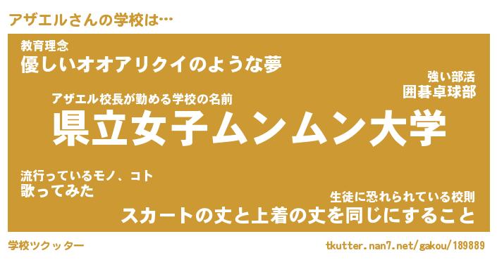 | ヘコむあだ名 | 『アザにゅー』『豆乳』『アザっぺ』 |