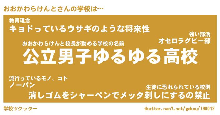 | 男性向けラノベタイトル風あだ名 | 『おおかわらけんとの憂鬱』 |
