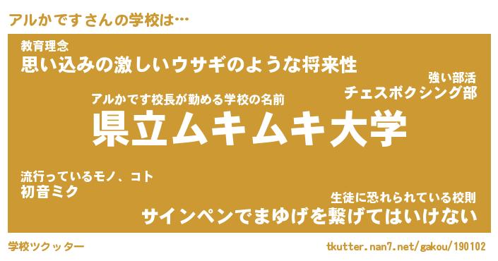 | 男性向けラノベタイトル風あだ名 | 『アルかですの憂鬱』 |