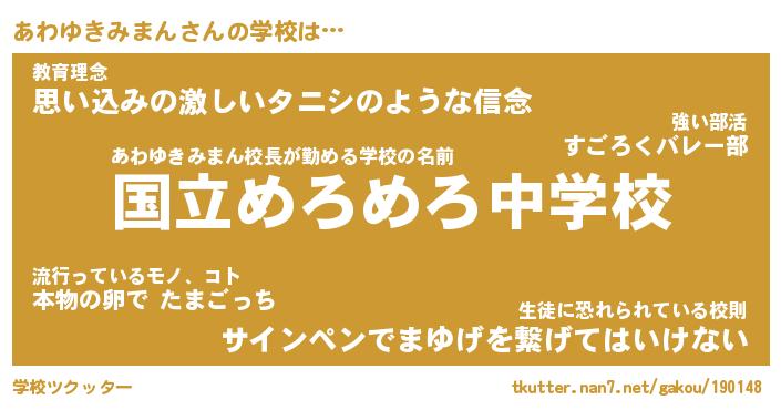 | 伝説のあだ名 | 『伝説のスナイパーあわゆきみまん』 |