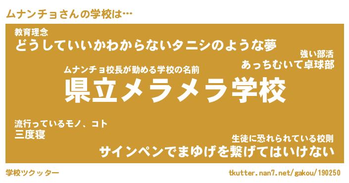 | 男性向けラノベタイトル風あだ名 | 『ムナンチョの憂鬱』 |