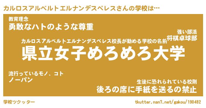 | 番長 | カルロスアルベルトエルナンデスペレス、またの名を・・・!『実はそうでもないカルロスアルベルトエルナンデスペレス番長』 |