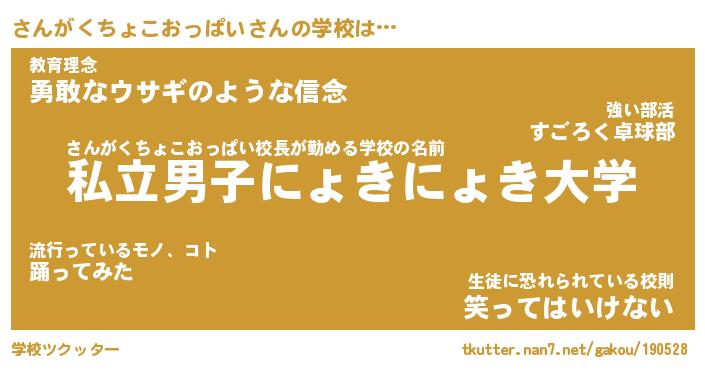 | 男性向けラノベタイトル風あだ名 | 『さんがくちょこおっぱいの憂鬱』 |
