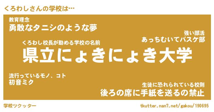 | 男性向けラノベタイトル風あだ名 | 『くろわしの憂鬱』 |