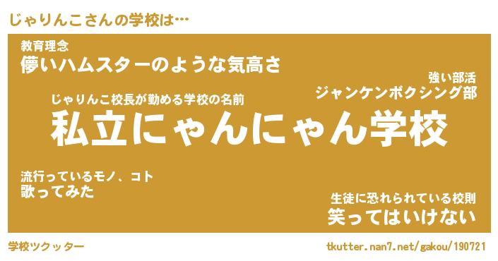 | 男性向けラノベタイトル風あだ名 | 『じゃりんこの憂鬱』 |