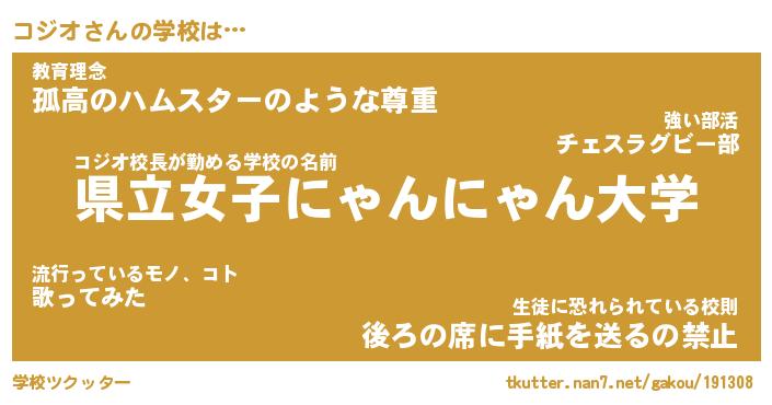 | 意味不明あだ名 | 『ペロリンコジオ』『コジオフォーエバー』 |