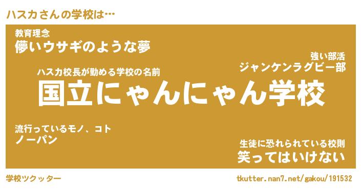 | 意味不明あだ名 | 『ペロリンハスカ』『ハスカフォーエバー』 |