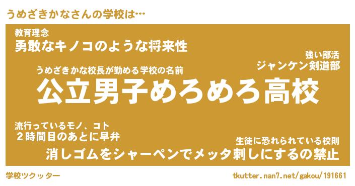 | 女子向けラノベタイトル風あだ名 | 『うめざきかな姫と円卓の騎士』 |