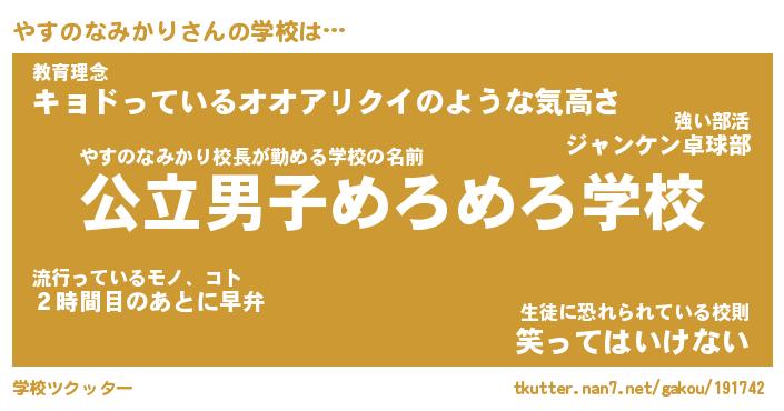 | 男性向けラノベタイトル風あだ名 | 『やすのなみかりの憂鬱』 |