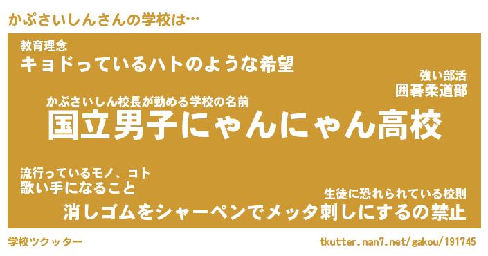 | ピコ太郎風あだ名 | 『カコ五郎』『ピカ十郎』『カプ六郎』 |