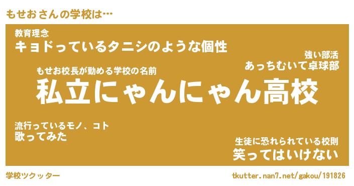 | ピコ太郎風あだ名 | 『モコ五郎』『ピモ次郎』『モセ一郎』 |