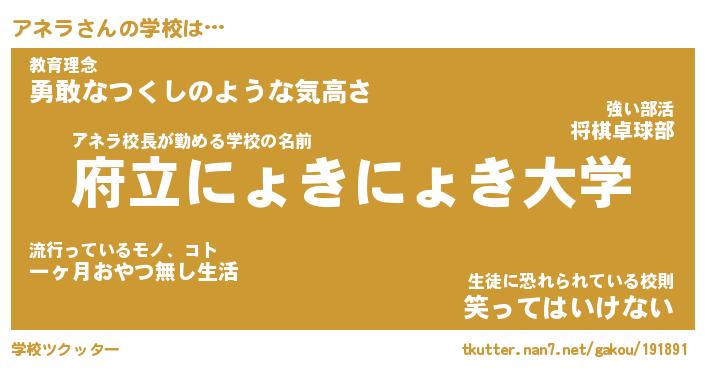 | 肩書あだ名 | 『アネラ店長』『アネラ総理大臣』 |