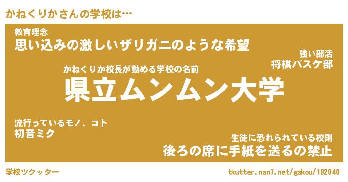 | 男性向けラノベタイトル風あだ名 | 『かねくりかの憂鬱』 |