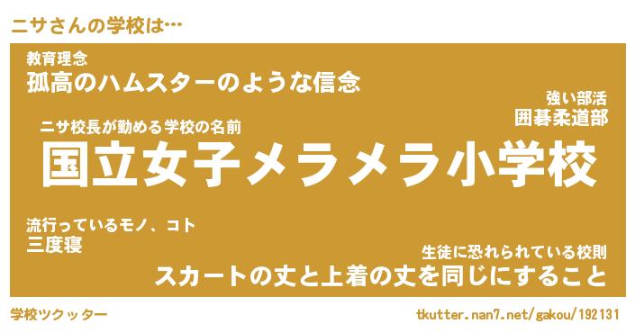 | ヒーロー風カッコイイあだ名 | 『スーパーニサ』『ウルトラニサマン』 |