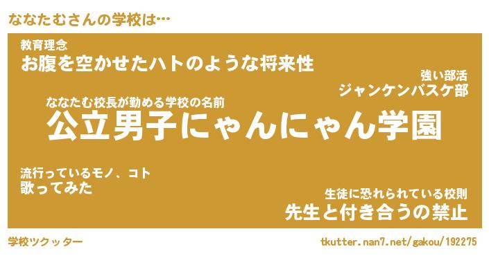 | 意味不明あだ名 | 『ペロリンななたむ』『永久保存ななたむ』 |