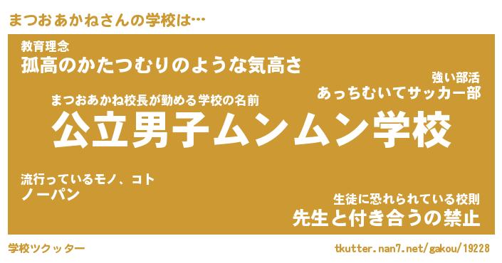 | 男性向けラノベタイトル風あだ名 | 『まつおあかねの憂鬱』 |